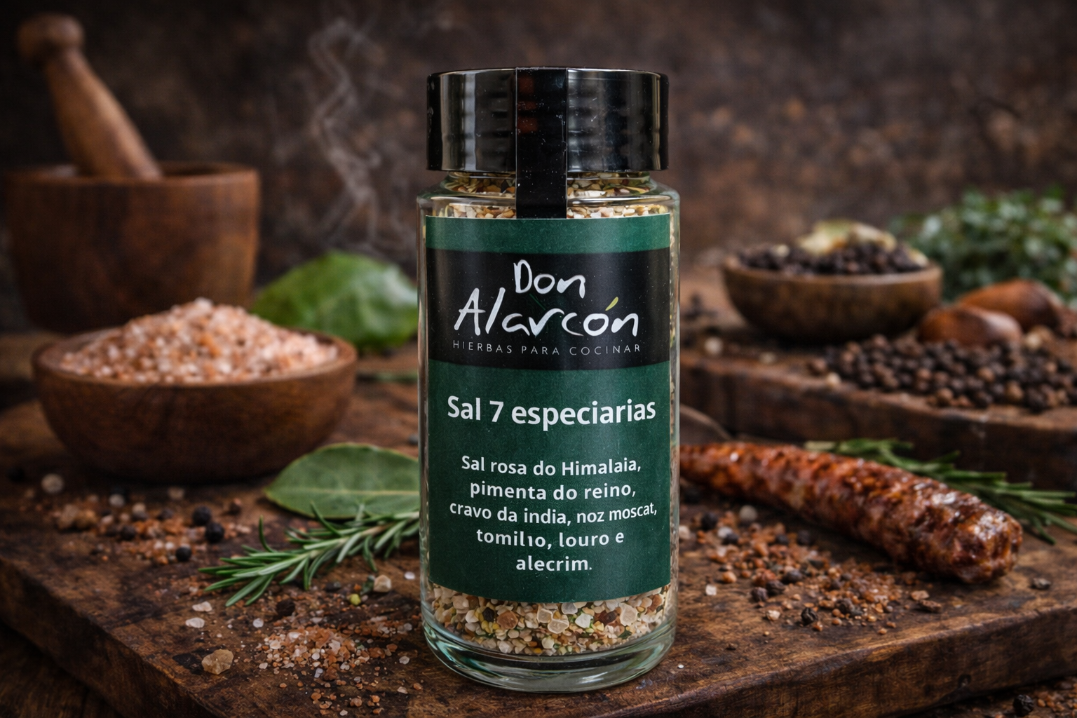 O Sal 7 Especiarias foi criado para quem busca mais sabor com menos esforço. Uma combinação equilibrada de Sal Rosa do Himalaia, noz-moscada, pimenta-do-reino, louro em pó, tomilho, alecrim e cravo-da-índia, que transforma receitas simples em preparações aromáticas e marcantes.